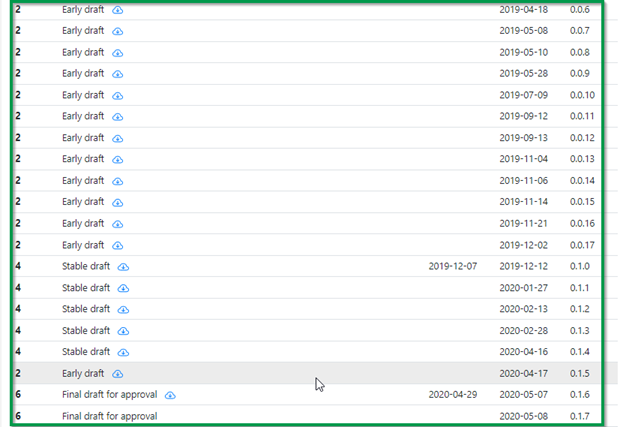 When changes are made during the drafting phase, the consecutive version numbers of the draft will increase depending on the type of changes applied (see figure 2).